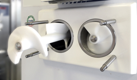 Telme Softeis- und Froozen Yogurt Maschine Softgel 320 mit der Annehmlichkeit einer einfach strukturierten Maschine mit Sickerventilsystem und einer Volumenerhöhung von bis zu 40% beim Endprodukt. Leichte und einfache Bedienung zeichnen diese Maschine aus. Lieferung auf fahrbaren Unterbauwagen Optional.